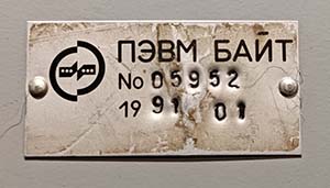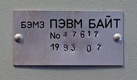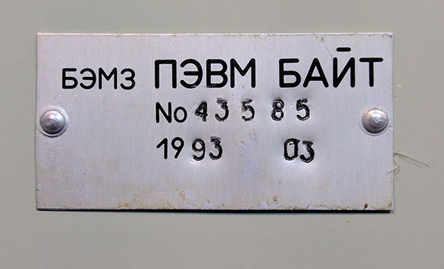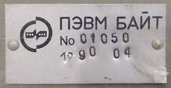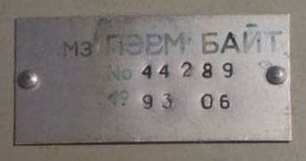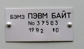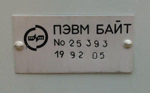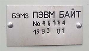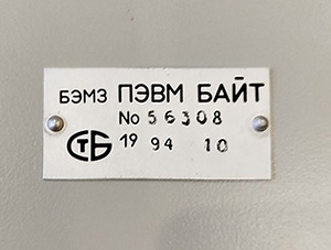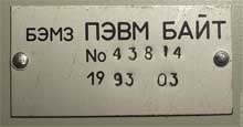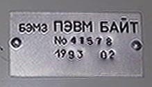 | 1995.12 | 63478Возможно перебита дата. Компьютер с этим номером не мог быть произведен в декабре 1996 года - в это время Байты не выпускались и уже исчезли из продажи в магазинах. | | |