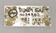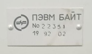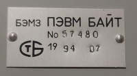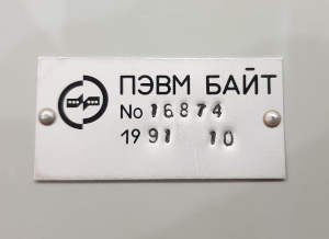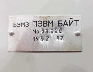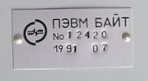 | 1991.12 | 07539Тут какая-то нестыковка. Компьютер с таким номером должен быть «старой» модификации, но по факту это самый обычный «Байт». Поэтому остаётся загадкой почему такой серийный номер и такая дата изготовления. Вероятно, дата выпуска с ошибкой в один год. Для такого номера более подходит дата выпуска 1990.12 | | |